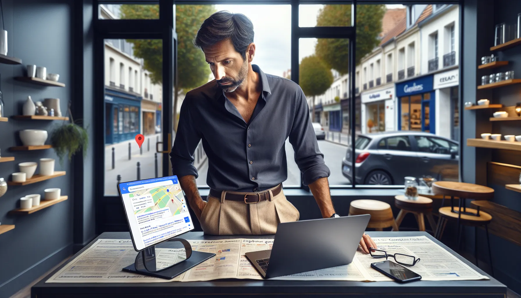 Local business owner in Lognes checking his Google search and Maps rankings.